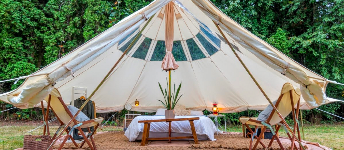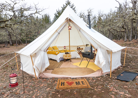 We performed extensive field tests by setting up camp for hundreds of glampers in the wild Pacific Northwest. Then we got to work designing a canvas bell tent that will both stand up to mother nature and stand out on social feeds.