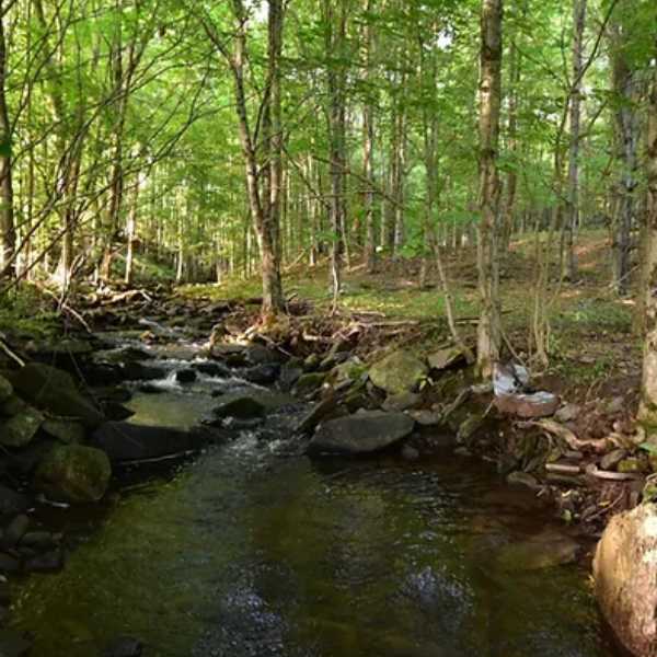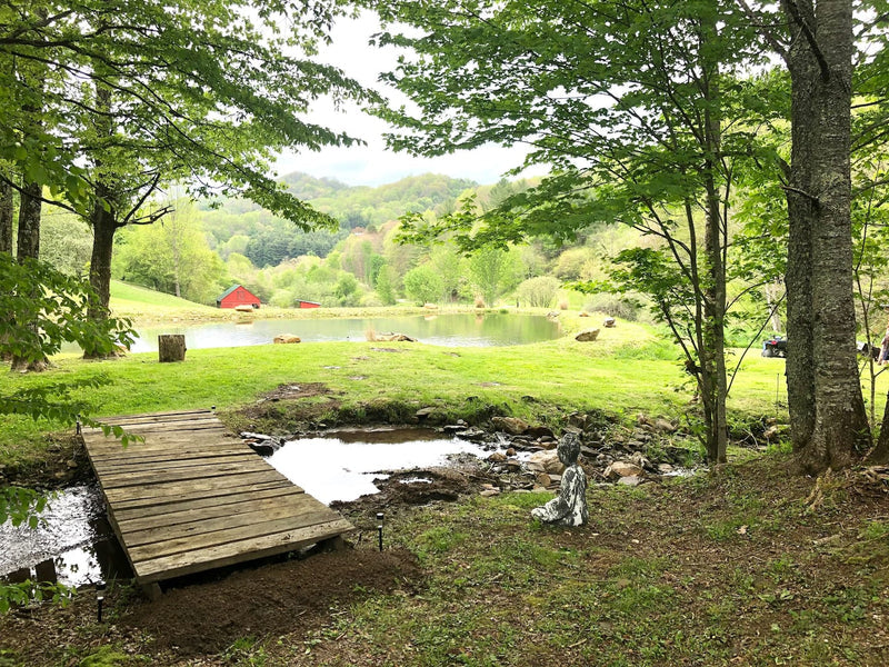 Privately sitting beside a rushing stream at the base of Peak Mountain and a peaceful meditation pond. Escape to enjoy this stargazing tent with a partner, or bring another couple that can stay at the onsite tiny house.