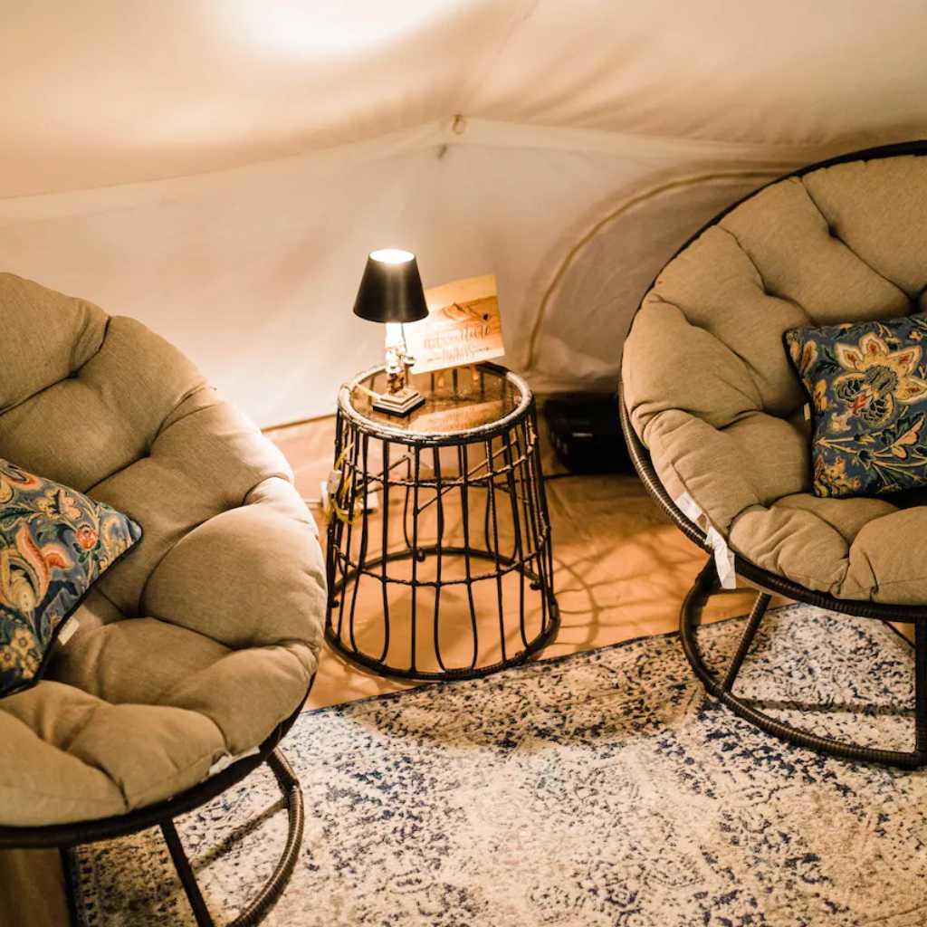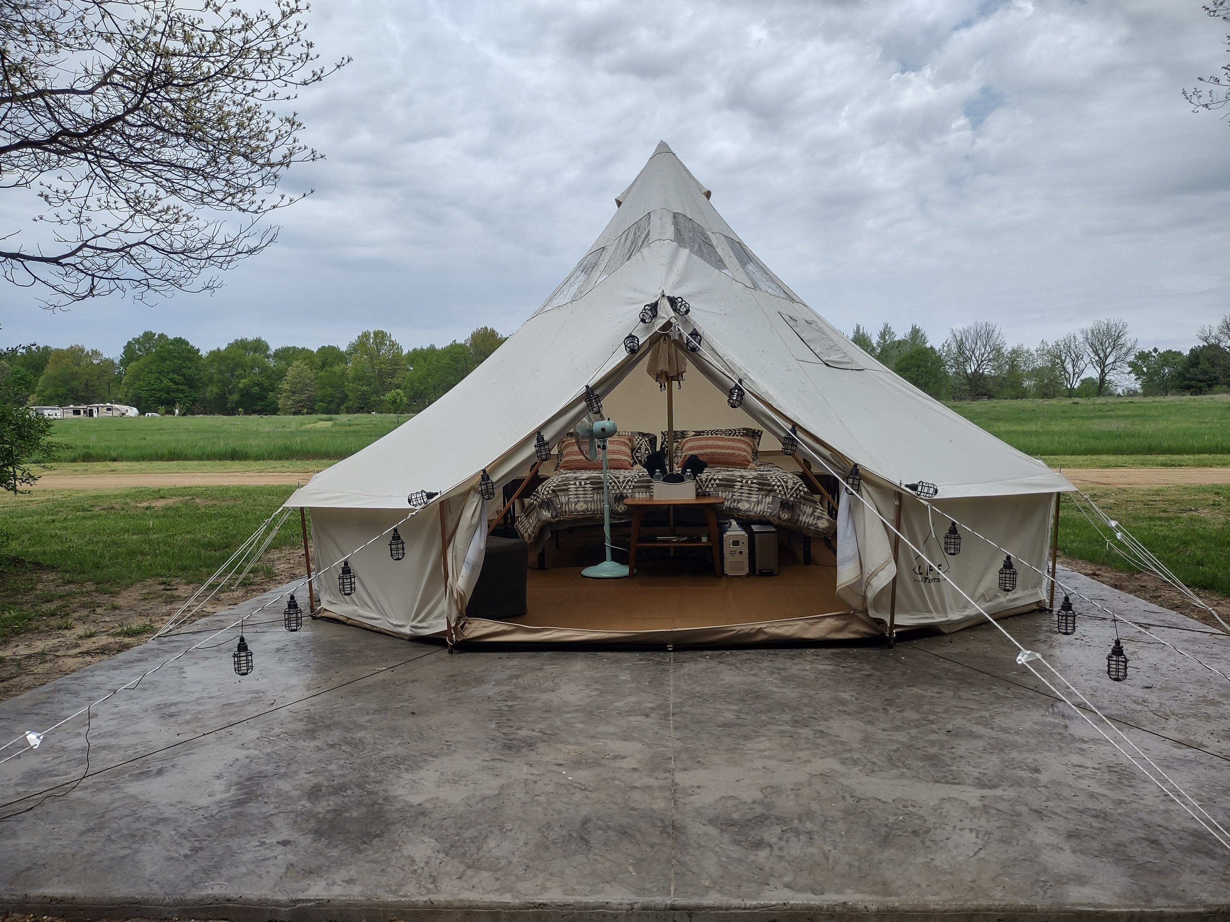 The glampground provides enough space in between each campsite to give you the solitude you desire - while also having a communal space where adventurers can come play cornhole, listen to music, and truly connect with others without their cell phones. Experience Missouri glamping.