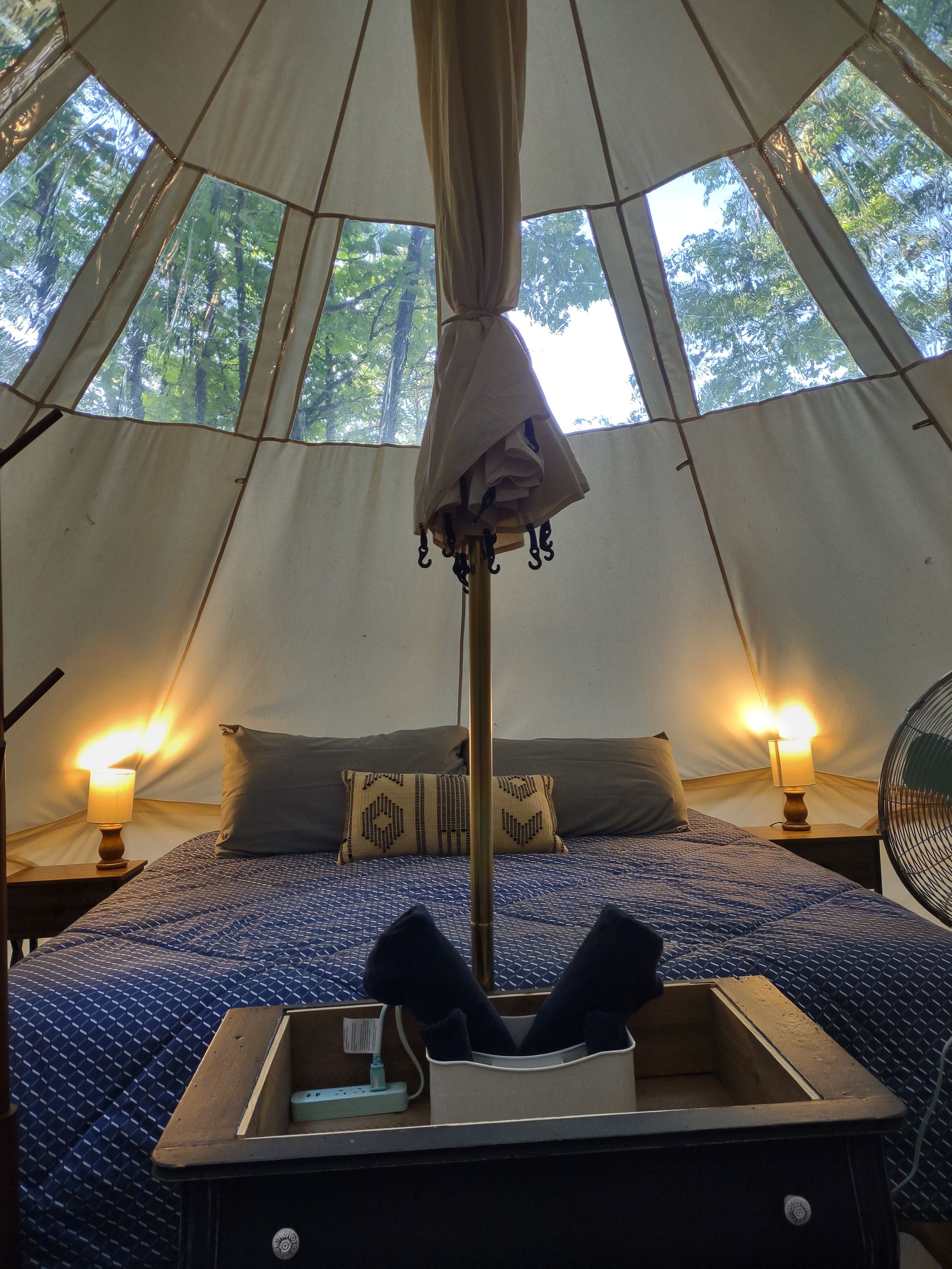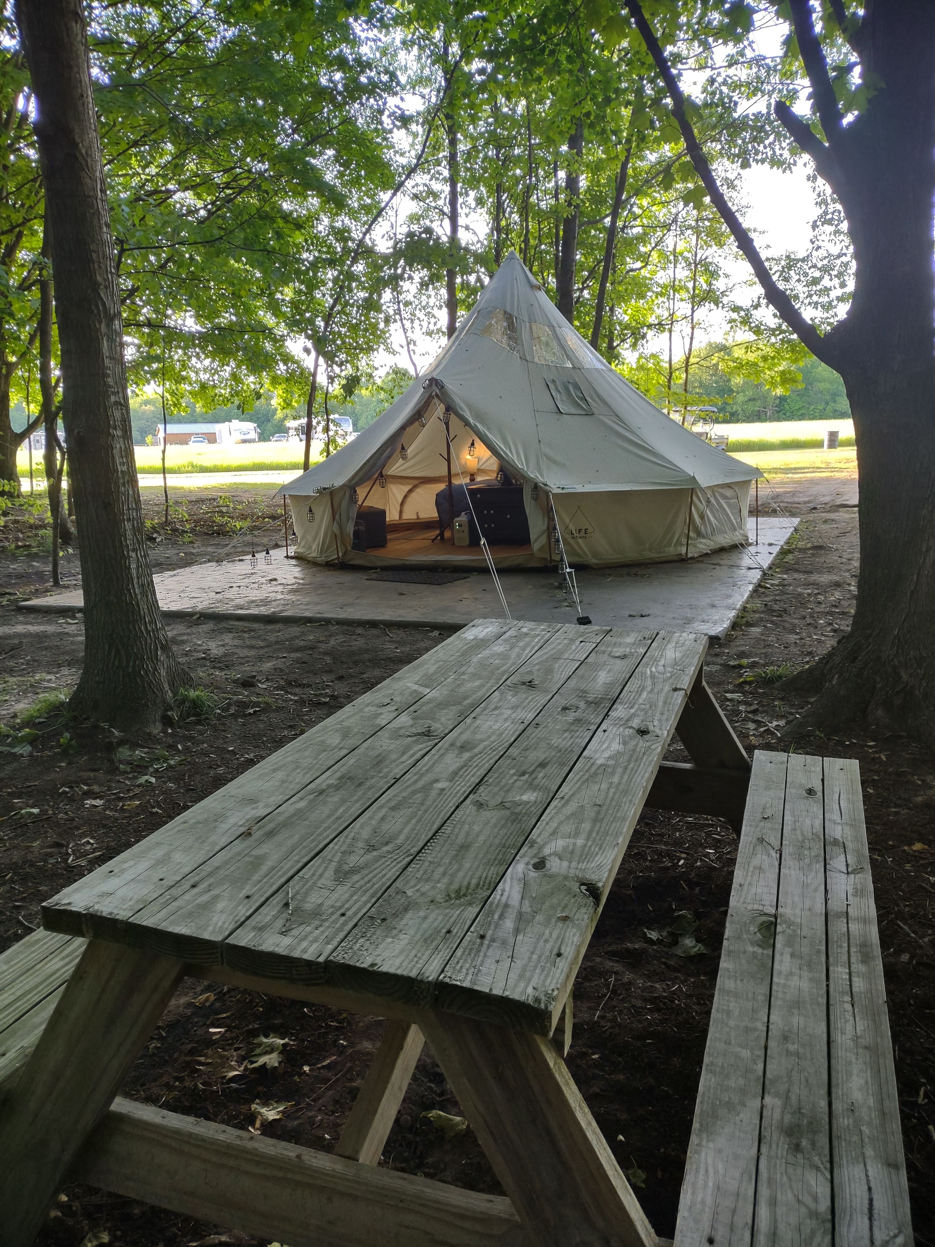This cozy bell tent is pet friendly and overlooks 20 acres of unoccupied woodland for you to enjoy. It is just a short drive to downtown South Haven, MI - but the campus has so much available onsite.