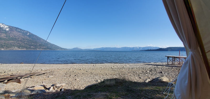 Stay in the one of our Fernweh bell tents on Lake Pend Oreille at Hawkins Point, ID. Have access to all the amenities of a family-owned beach: a dock, fire pit, barbecue grill, horseshoe pit, concrete boat ramp suitable for paddle-craft, a table that converts to two benches, beach shelter, hammock, outdoor shower and sink, and more.